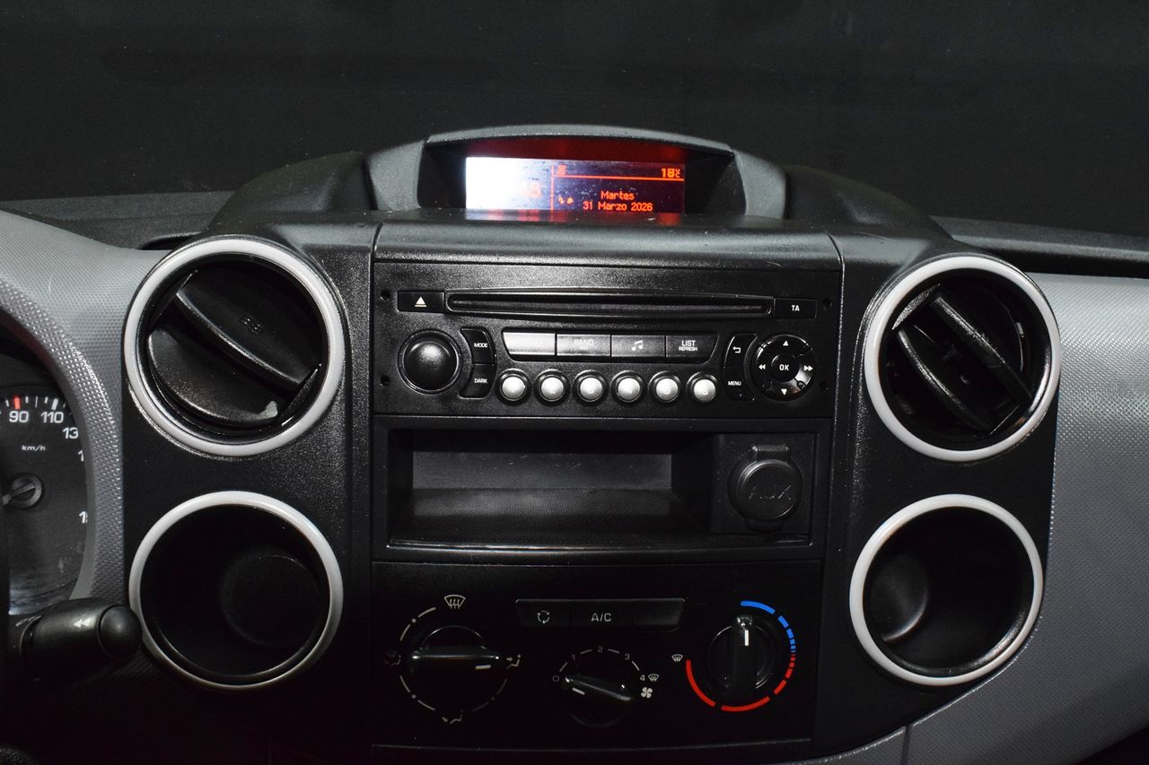 - Puerta lateral derecha deslizante- Rueda de seguridad homogénea- Mantenimiento del modelo- Paquete: eléctrico- Paquete fumador- Carrocería/estructura: Caja- Regulación del alcance de las luces- Molduras protectoras anchas (PVC)- Preinstalación radio, 2 Altavoces- Airbag lado del conductor- Panel separador de carga media altura + rejilla- Rejilla protectora para la carga Detrás Conductor- Recubrimiento del suelo Vinilo- Cubierta en Compartimento de carga- tapicería asientos: Tela- Puertas traseras doble hoja Sin Lunas- Dispositivo de alarma para Cinturones de seguridad- Luces de lectura delante- Inmovilizador- Sistema antibloqueo (ABS)- Asistente a la conducción: Freno de emergencia- Columna de dirección (Volante) regulable- Dirección asistida- Programa electrónico de estabilidad (ESP)- Tipo transmisión: Tracción delantera- Batalla 2728 mm- Caja de cambios 5-marcha- Reducción polución según norma gases escape Euro 6 (PSA Euro 6.1)- Filtro partículas- Motor 1,6 Ltr. - 55 kW Blue-HDI FAP