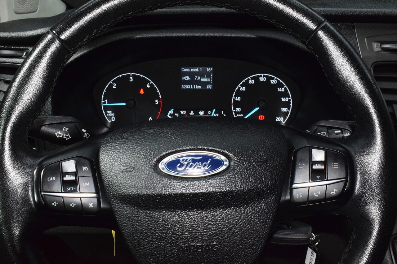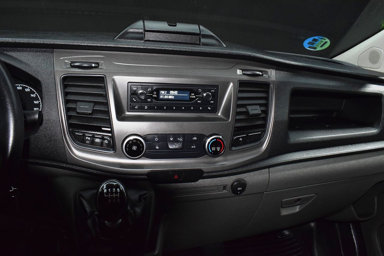 - Mantenimiento del modelo- Paquete-protector compart. carga- Paquete Visión 2- Paquete asientos 25: Asiento del conductor (regulable en 4 posiciones) - Asiento del acompañante doble - en velours- Carrocería/estructura: Caja Estándar- Retrovisor exterior en color carrocería- Intermitente en Retrovisor exterior integrad.- Luces antiniebla- Luz de giro en Faro- Molduras laterales protectoras- Guardabarros delante y detrás- Paragolpes en color carrocería- Lunas tintado- Ventana en compartimento carga - Fijo, 1ª fila izquierda- Ventana en compartimento carga - Fijo, 1ª fila derecha- Sistema de audio: Radio/Lector de CD con Ford SYNC (Monocromo / apto para gráfico)- Ordenador de a bordo- Sistema de asistencia para aparcamiento delante y detrás- Control de crucero (Tempomat)- Airbag lado del conductor- Airbag acompañante- Portaobjetos en Techo interior Cabina- Tabique separador del compartimento de carga elevado Detrás Conductor y Acompañante, Sin Ventana con posibilidad de comp- Cubierta del piso: Vinilo en Compartimento carga/Habitáculo- Aire acondicionado- ? Filtro de polen- Asientos en compart. carga: 1ª fila, 2-posiciones abatible- Elevalunas eléctric.- Cierre centralizado con Mando a distancia- Puertas traseras doble hoja Sin Lunas (Ángulo de abertura 180 Grado)- Puerta corredera Compartimento carga/Habitáculo derecha- Agarraderos de la puerta ext. y Agarradero del portón trasero en color carrocería- Inmovilizador- Pomo palanca cambios cuero- Rieles de sujeción lateral en Compartimento de carga- Sistema antibloqueo (ABS)- Distribuidor eléctrónico de frenada (EBD)- Llantas de aleación 6,5x16- Batalla 3300 mm- Rueda de repuesto- Columna de dirección (Volante) regulable altura y longitud- Regulación antideslizante (ASR)- Programa electrónico de estabilidad (ESP)- Asistente a la conducción: Asistente de subidas- Tipo transmisión: Tracción delantera- 2. Batería- Caja de cambios 6-marcha- Filtro partículas- Reducción polución según norma gases escape Euro 6d-TEMP- Sistema Start/Stop- híbrido-suave 96 kW (Motor 2,0 Ltr. - 96 kW Diesel)- Limited