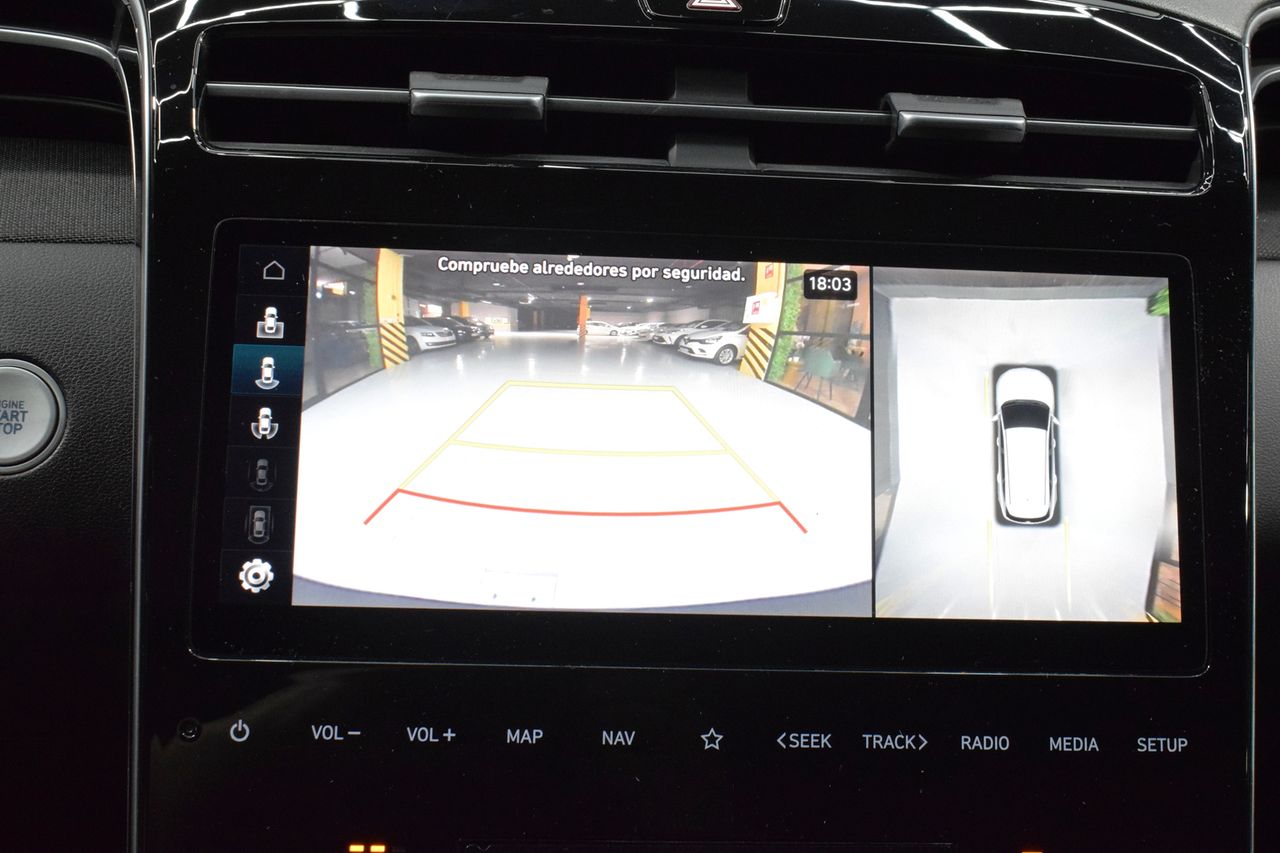 - Carrocería: 5 puertas- Rejilla paragolpes Cromado- Programa de estabilidad para el remolque (TSA)- Retrovisor exterior plegable eléctricamente- Retrovisor exterior regulable eléctricamente y calefactable, ambos- Retrovisor exterior pintado- Barras portaequipajes en el techo- Faro Faros LED-Matrix- Intermitente en Retrovisor exterior integrad.- Encendido automático de luces / Sensor de luz- Asistente a la conducción: Asistente luz carretera- Luz de giro- Pilotos traseros LED- Activos Luz de freno (ESS)- 3. Luces de freno- Luz de día LED- Limpiaparabrisas con Sensor de lluvia- Lunas tintado- Lunas Cristal protector ruido- Lunas detrás tintadas (Privacy Glass)- Luna trasera calefactable(s)- Receptor de radio digital (DAB+)- Sistema de sonido KRELL- 8 Altavoces- Altavoz de sonidos agudos- Dispositivo manos libres Bluetooth- Asistente a la conducción: sistema de seguridad con automático Aviso de socorro (ERA GLONASS / eCall)- Conexión USB consola central- Lifetime MapCare (servicio básico de internet)- Conexión USB detrás- Wireless SmartLink (Apple CarPlay)- Digital Cabina del piloto (Cockpit Digital)- Sistema audio-navegador- Asistente a la conducción: Ayuda aparcamiento delante y detrás- Sistema-revisión: Remote Services (Blue Link)- Sistema control presión neumáticos- pantalla táctil en color (10,25 Pulgada)- Control de crucero (Tempomat) con ACC y Función stop- Sistema limitador de velocidad (Speed-Limiter)- Airbag lado del conductor- Airbag acompañante- Airbag lateral delante centro (Central Airbag)- Sistema de airbag para la cabeza- Airbag lateral delante- Airbag acompañante Desconectable- Reposabrazos central delante- Reposabrazos central detrás- Reposabrazos central detrás con Portavasos- Cubierta del maletero / Persiana- Persiana de protección solar en Cristales puertas detrás- Portaobjetos / Cámara de retención Debajo Suelo del maletero- Red para equipajes en Maletero/compartimento de carga- Aire acondicionado para 3ª fila de asientos- Climatizador automático 3 zonas- Ventilación Espacio interior (Multi-Air-Modus)- Toberas de aire detrás- Calefacción del asiento delante- Calefacción del asiento detrás- tapicería asientos: cuero- Asiento delante izquierda regulable eléctricamente- Asiento delante derecha regulable eléctricamente- Función de memoria para Asiento delante izquierda- Asiento delante izquierda regulable en altura- Asiento delante derecha regulable en altura- Bolsas portaobjetos en respaldo asientos delant.- Soporte lumbar Asiento delante izquierda, regulable- Respaldo del asiento trasero dividido/abatible- Respaldo del asiento trasero abatible con Desbloqueo a distancia en Maletero- Elevalunas eléctric. con Protección de aplastamiento- Elevalunas eléctric. delante y detrás, con Desmontaje/montaje automát.- Cierre centralizado con Mando a distancia- Smart-Key- Botón-start-stop- Portón eléctric. accionado (Abertura, controlado por sensor)- Agarraderos de la puerta ext. color carrocería- Iluminación ambiente- Luces de lectura delante y detrás LED- Retrovisor interior con sistema antideslumbramiento autom.- Parasoles con Espejo- Parasoles con Espejo (iluminación)- Sensor empañado lunas / Regulación- Sistema de cámaras Around View- Cargador wireless para Smartphone- Sistema antibloqueo (ABS)- Distribuidor eléctrónico de frenada- Asistente del freno- Freno de estacionamiento eléctric. (EPB)- Asistente a la conducción: Función autónoma del freno emergencia incl. Aviso de colisión frontal (FCA)- Asistente a la conducción: Freno multicolisión (Multi Collision Brake)- Asistente a la conducción: Advertencia de salida- Asistente a la conducción: Asistente del tráfico transversal Parte trasera (Cross Traffic)- Asistente a la conducción: Reconocimiento de señales de tráfico, ampliado (Control crucero y limitador velocidad)- Asistente a la conducción: Asistente de ángulo muerto- Asistente a la conducción: Asistente en la autopista (Highway Driving Assist, HDA)- Asistente a la conducción: Asistente de ángulo muerto con Pantalla del monitor (BVM)- Amortiguación del tren de rodaje electrónica Regulado (ASD / ECS)- Asistente a la conducción: activo Asistente de mantenimiento de carril (LKAS, Lane Keep Assist System)- Asistente a la conducción: Asistente para la atención- Llantas de aleación 7,5x19- Kit reparación de neumáticos- Volante calefactable(s)- Volante (cuero) con Multifunción- Volante con Levas- Dirección asistida- Programa electrónico de estabilidad (ESP)- electrónico Control de estabilidad (ESC) con Asistente del freno- Tipo transmisión: Tracción total- Asistente a la conducción: Asistente para bajadas- Asistente a la conducción: Driving Profile Selection (Drive "Moda")- Asistente a la conducción: Asistente de subidas- Batalla 2680 mm- Caja de cambios automática - (6 velocidades)- Reducción polución según norma gases escape Euro 6d- Sistema Start/Stop- Filtro partículas-Otto (GPF) (Filtro part. Otto)- Híbrido 195 kW (Motor 1,6 Ltr. - 132 kW T-GDI)