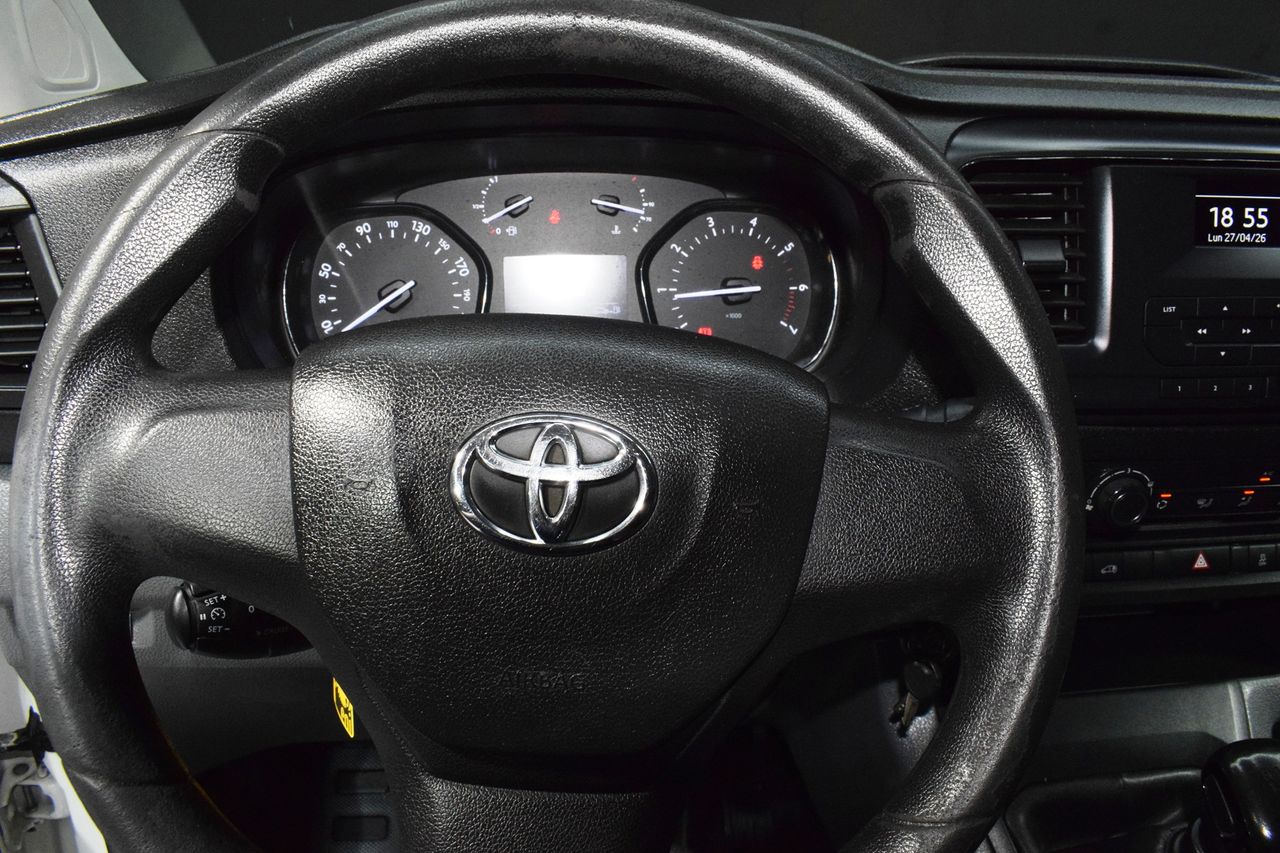 - Paquete Confort- Paquete Visión- Carrocería/estructura: Caja- Luces antiniebla- Perfiles cromados para Luces antiniebla- 3. Luces de freno- Luz de día- Molduras laterales protectoras Negro- Cubierta/revestimiento del umbral- Sistema de audio: Multimedia Toyota Pro Touch- Mando distancia para la radio el Volante- Ordenador de a bordo- Control de crucero (Tempomat)- Sistema limitador de velocidad- Airbag conductor/acompañante- Tabique separador del compartimento de carga con Ventana- Asientos confort- Asiento delante izquierda regulable en altura- Asiento del acompañante doble- Soporte lumbar Asiento delante izquierda- Equipamiento asientos: 3° asiento- Puertas traseras doble hoja Sin Lunas- Puerta corredera Espacio acompañante/Compartimento carga derecha- Inmovilizador- Guantera con Función refrigeradora- Toyota Smart Cargo- Sistema antibloqueo (ABS)- Distribuidor eléctrónico de frenada- Asistente del freno- Asistente a la conducción: Sensor-reconocimiento de cansancio- Rueda de repuesto- Columna de dirección (Volante) regulable- Dirección asistida eléctric.- Toyota tracción Select (TTS)- Programa electrónico de estabilidad (VSC)- Tipo transmisión: Tracción delantera- Asistente a la conducción: Control de subidas en montes (HAC)- Batalla 3275 mm- Caja de cambios 6-marcha- Reducción polución según norma gases escape Euro 6- Stop&Go-System (TSGS)- Filtro partículas- Motor 2,0 Ltr. - 90 kW D-4D CAT