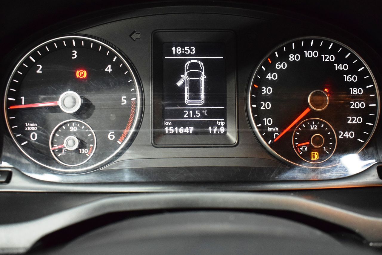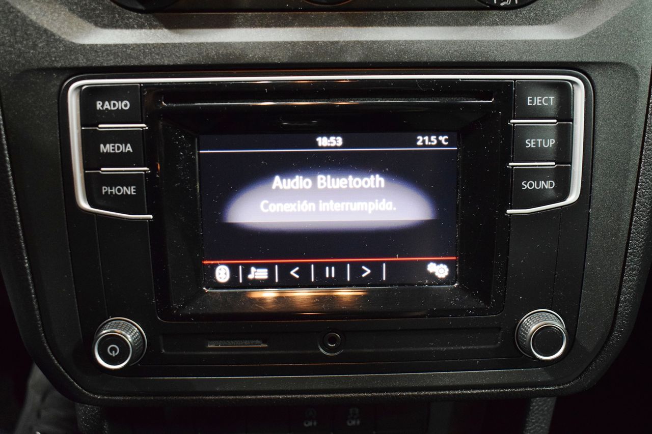 - Conector-multimedia USB (iPhone / iPod)- Asiento delante izquierda con Desbloqueo del respaldo- Asistente a la conducción: Asistente de subidas- Paquete de equipamiento: BlueMotion Technology- Paquete no fumador- Paquete eléctrico- Carrocería/estructura: Monovolumen- Rejilla paragolpes Negro con Moldura cromada abajo- Retrovisor exterior, Versión: ?- Retrovisores exteriores convexos, derecha- Retrovisor exterior esférico, izquierda- Luces antiniebla con integrado luz de curva- Luz de día- Molduras laterales protectoras- Lunas atérmicas tintado en verde- Luna trasera calefactable(s)- Ventanilla lateral en Compartimento carga/Habitáculo delante izquierda, fijo- Ventanilla lateral en Compartimento carga/Habitáculo delante derecha, fijo- Ventanilla lateral en Compartimento carga/Habitáculo detrás izquierda, fijo- Ventanilla lateral en Compartimento carga/Habitáculo detrás derecha, fijo- Sistema de audio Composition Colour (pantalla táctil, MP3, Radio/Lector de CD)- Indicador control neumáticos- Control de crucero (Tempomat)- Airbag lado del conductor- Cubierta del maletero / Persiana- Recubrimiento del suelo detrás (Alfombra)- Recubrimiento del suelo delante (Alfombra)- Techo interior confort delante- Aire acondicionado- ? Filtro de polvo y polen- tapicería asientos: Tela- Asiento delante derecha- Soporte lumbar Asiento delante izquierda- 2ª fila de asientos Asiento de banco (3 Asientos)- Cierre centralizado con Mando a distancia- Portón trasero con Lunas- Puerta corredera derecha- Cinturones de seguridad detrás con Tensor del cinturón- Retrovisor interior antideslumbrante- Inmovilizador (electrónico)- Sistema antibloqueo (ABS)- Asistente del freno- Asistente a la conducción: Freno multicolisión (Multi Collision Brake)- Asistente a la conducción: Reconocimiento de cansancio- Llantas de acero 6x15- Rueda de repuesto (Acero)- Columna de dirección (Volante) regulable mecánicam., Desplazamiento vertical/longitudinal- Dirección asistida electromecánica (Servotronic)- Diferencial autoblocante electrónico (EDS)- Regulación antideslizante (ASR)- Programa electrónico de estabilidad (ESP)- Tipo transmisión: Tracción delantera- Batalla 2682 mm- Caja de cambios 5-marcha- Reducción polución según norma gases escape Euro 6d-TEMP- Sistema Start/Stop- Filtro partículas- Control electrónico del par motor en reducciones (MSR)- Motor 2,0 Ltr. - 75 kW TDI- BlueMotion
